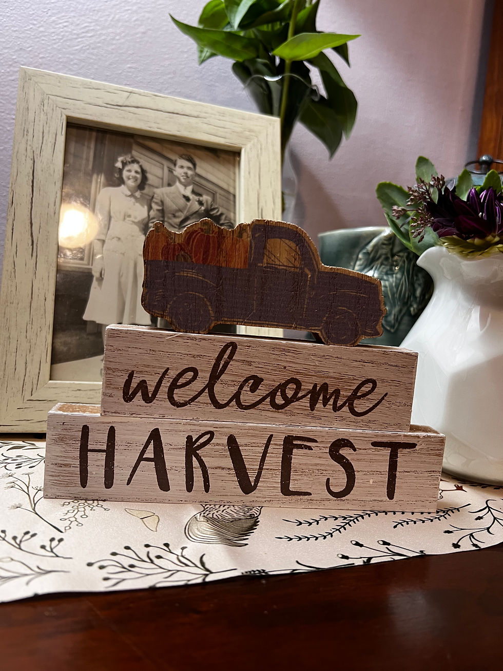 Fall /harvest half moon Welcome mat with pumpkins & leaves